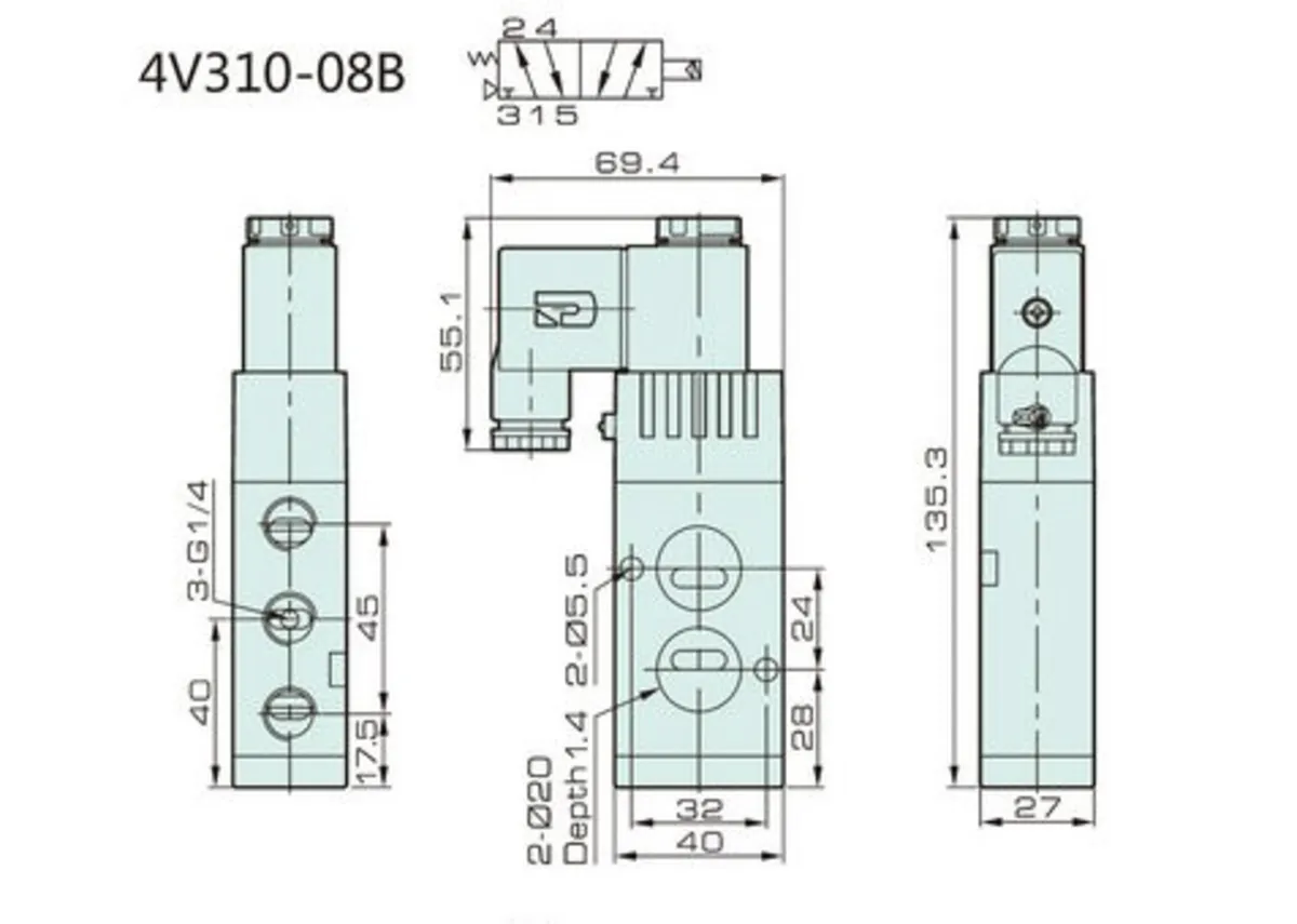 AircontrolSolenoid valve 2-5 single valve (body 3/8)