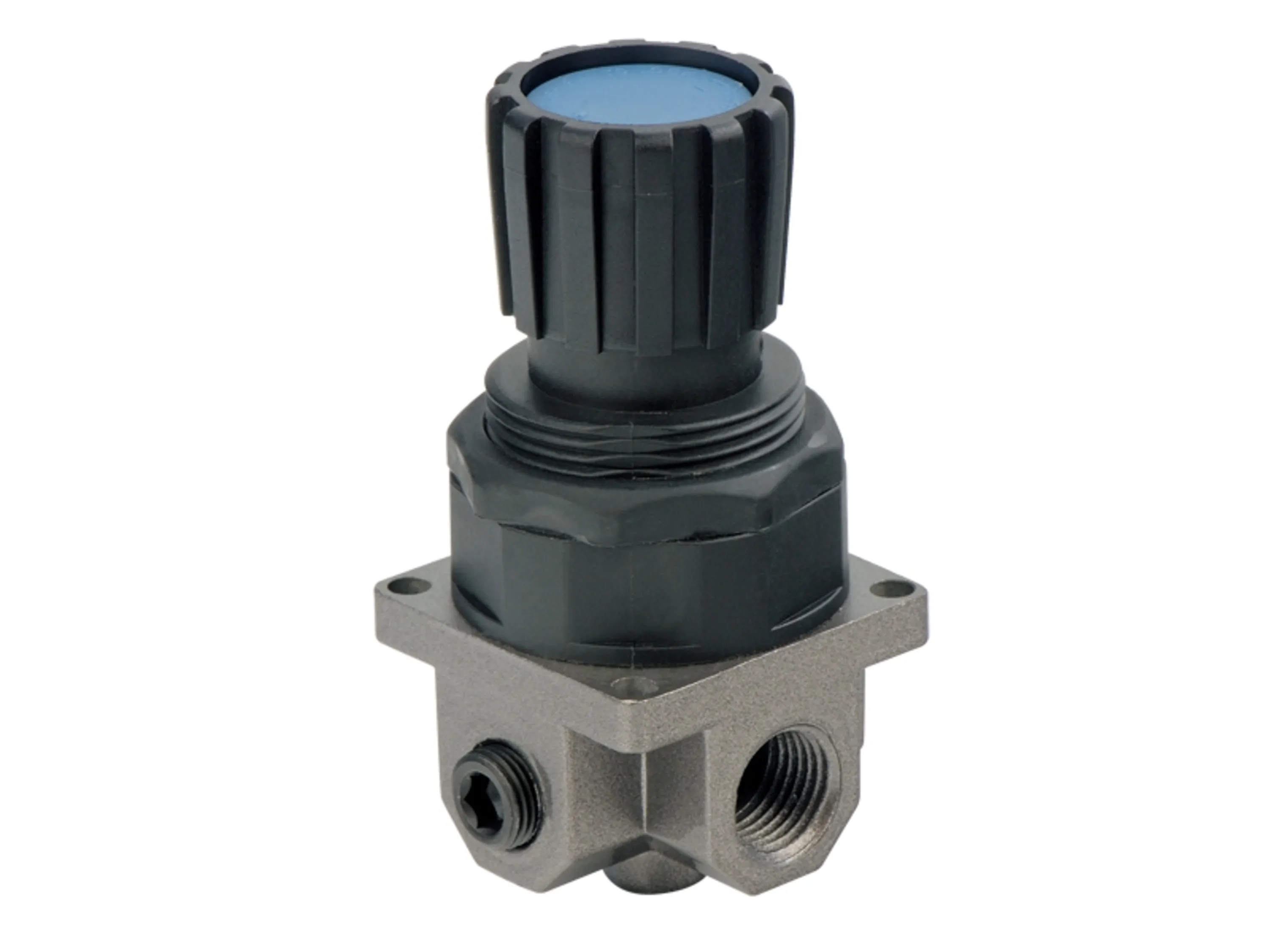 یکی از اجزای مهم واحد مراقبت رگولاتور یا تنظیم کننده هواست که به عنوان شیر تنظیم فشار نیز شناخته می شود. از آنجایی که هر سیستم پنیوماتیکی فشار عملکرد مخصوص به خود را دارد ، نیاز به یک شیر تنظیم فشار هوا یا رگولاتور ضرورت می یابد. رگلاتور برای ثابت نگهداشتن فشار کاری مستقل از نوسانات فشار داخل سیستم مورد استفاده قرار می گیرد. باید توجه داشت که رگولاتور تقویت کننده فشار نیست و فشار ورودی همواره باید بیشتر از فشار خروجی باشد. رگولاتور ها در دو نوع همراه با دهانه تخلیه و بدون دهانه تخلیه موجود می باشند. واحدهای مراقبت را معمولا در رنج فشار 1 تا 12 بار تنظیم می کنند.