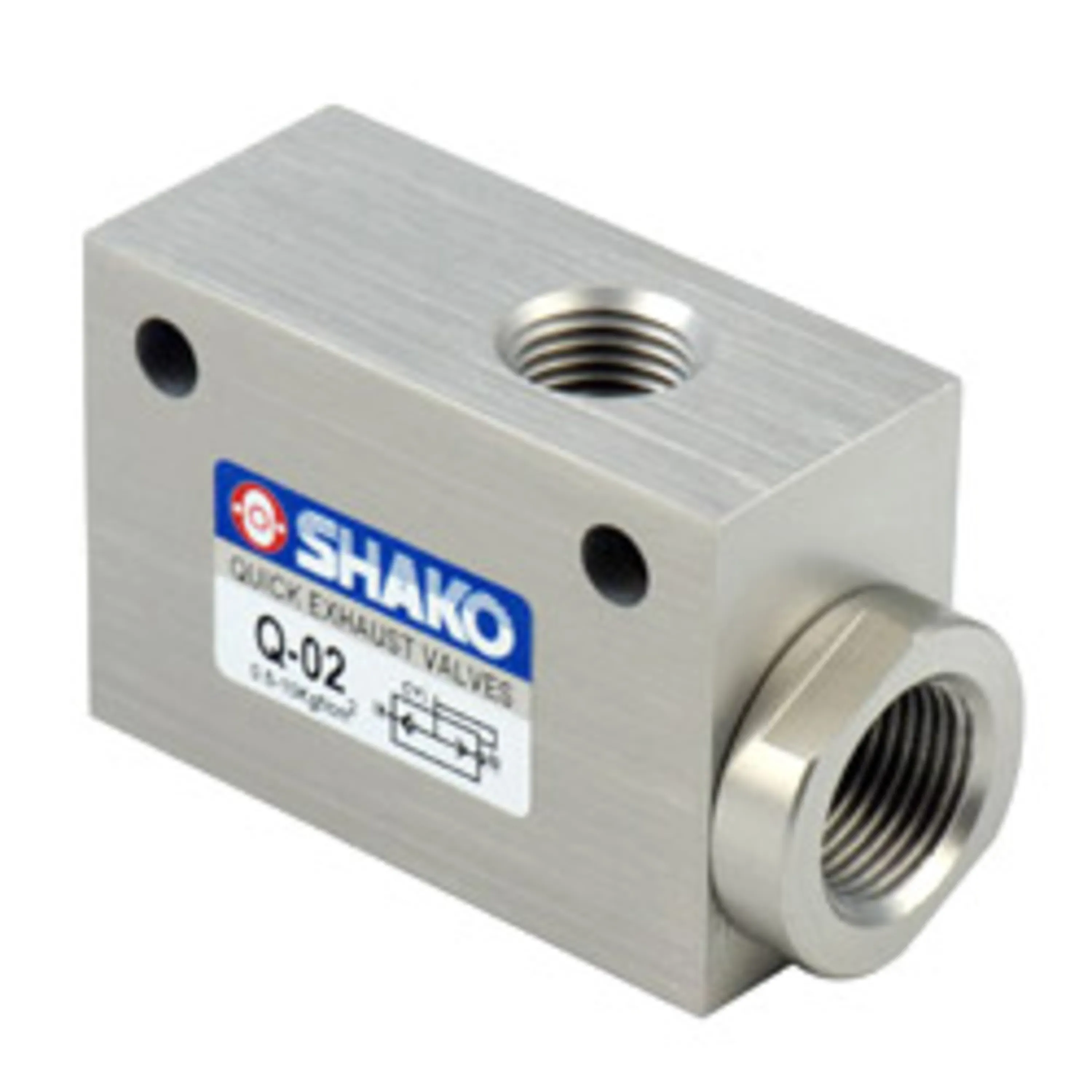 حداکثر نرخ جریان Q-02 شاکو 2300 لیتر بر دقیقه است . جنس بدنه آلومینیمی این نوع شیر سبب دوام و عمر طولانی شیر Q-02 میباشد . نوع سیال این نوع شیرهوای فشرده و سطح مقطع آن 28 میلیمتر مربع میباشد.