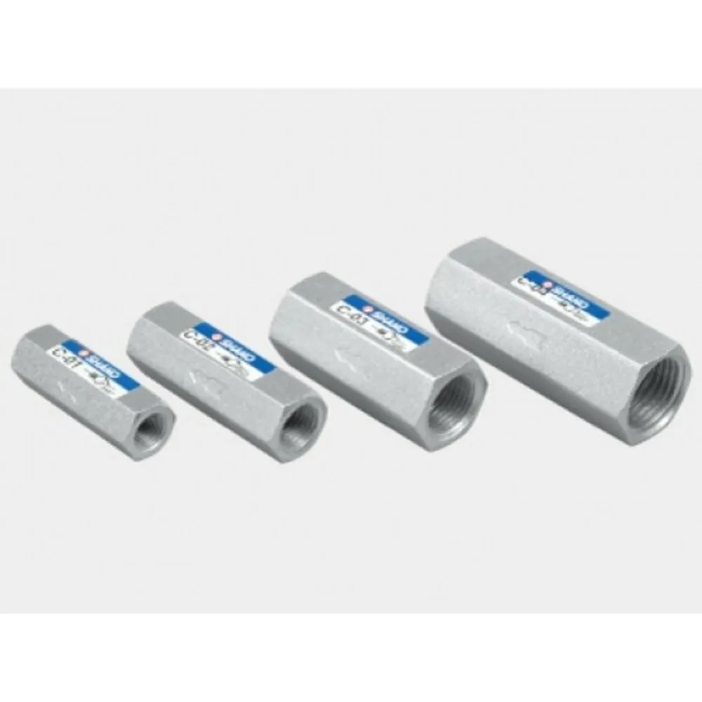 این نوع اتصالات جهت یکطرفه کردن مسیر هوا به کار گرفته می شود. در به کارگیری این اتصال باید به ورودی و خروجی آن توجه نمود. همچنین هنگام خرید باید به سایز شلنگ و رزوه آن دقت کرد. باید توجه داشت که حداکثر فشار کاری اتصالات پنوماتیک 10بار بوده و در صورت افزایش فشار بیش از این مقدار احتمال بروز نشتی و جدا شدن اتصال وجود دارد.