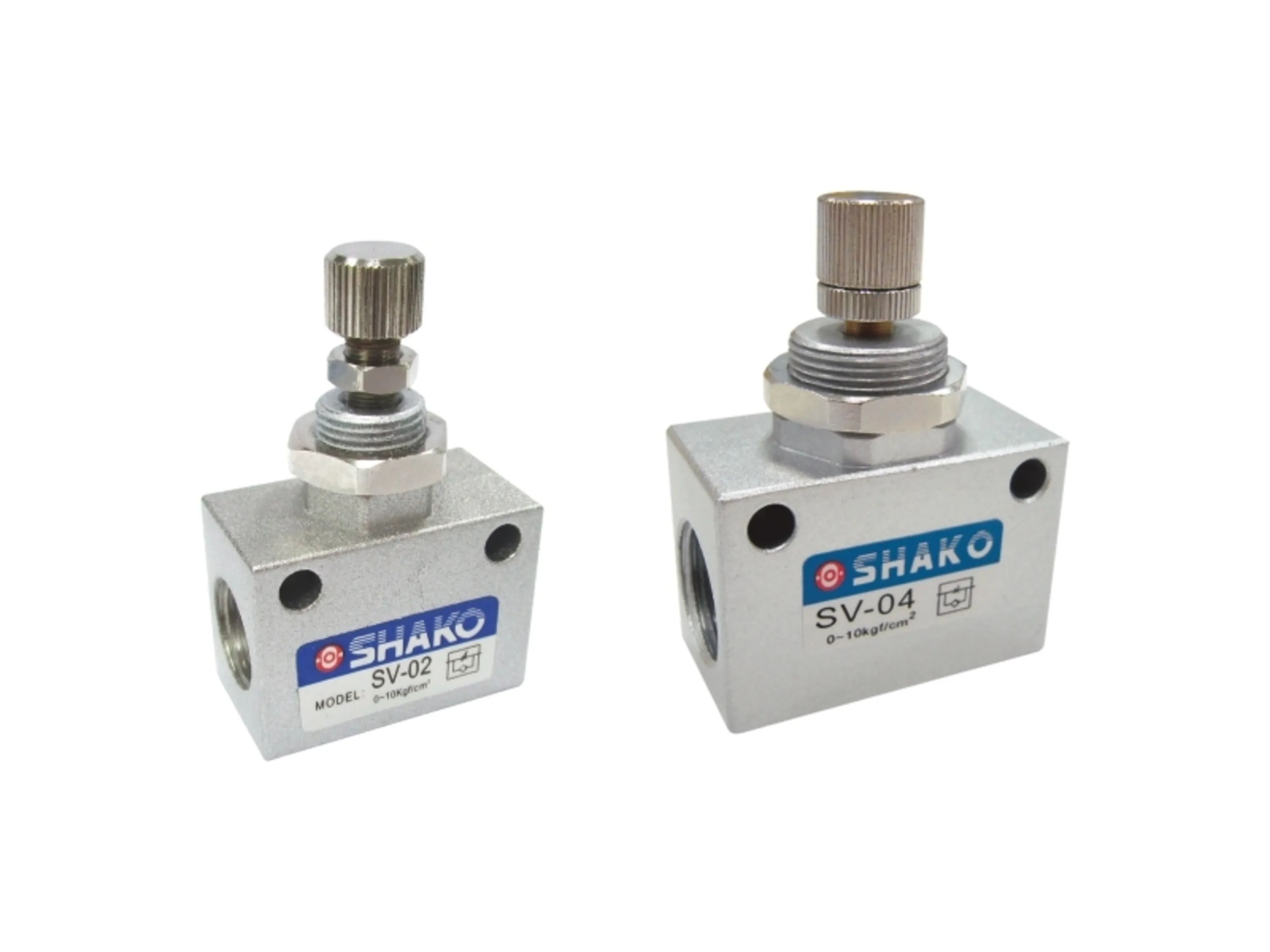 شیر SV-02 یک شیر کنترل دبی با سایز دهانه برابر با 1/4 اینچ می باشد. رزوه این شیر بصورت مادگی بوده و بااستفاده از اتصالات فیتینگ (fitting) می توان این شیر را تبدیل به نوع شیلنگ خور کرد. تفاوت این شیر با سری های S-02 در امکان تنظیم دقیق تر این شیر می باشد. بطوری که گام های حرکت پیچ تنظیم این شیر بسیار ریزتر بوده و بدین لحاظ با استفاده از این شیر عمل Fine Tuning را می توان روی سرعت حرکت جک ها اعمال نمود. سری SV به دلیل وجود مهره امکان نصب در روی درب پانل دستگاه ها را نیز دارد. فشار کاری این شیر تا 9/9 بار بوده و دمای کاری آن بین 10- تا 80+ درجه سانتیگراد می باشد.