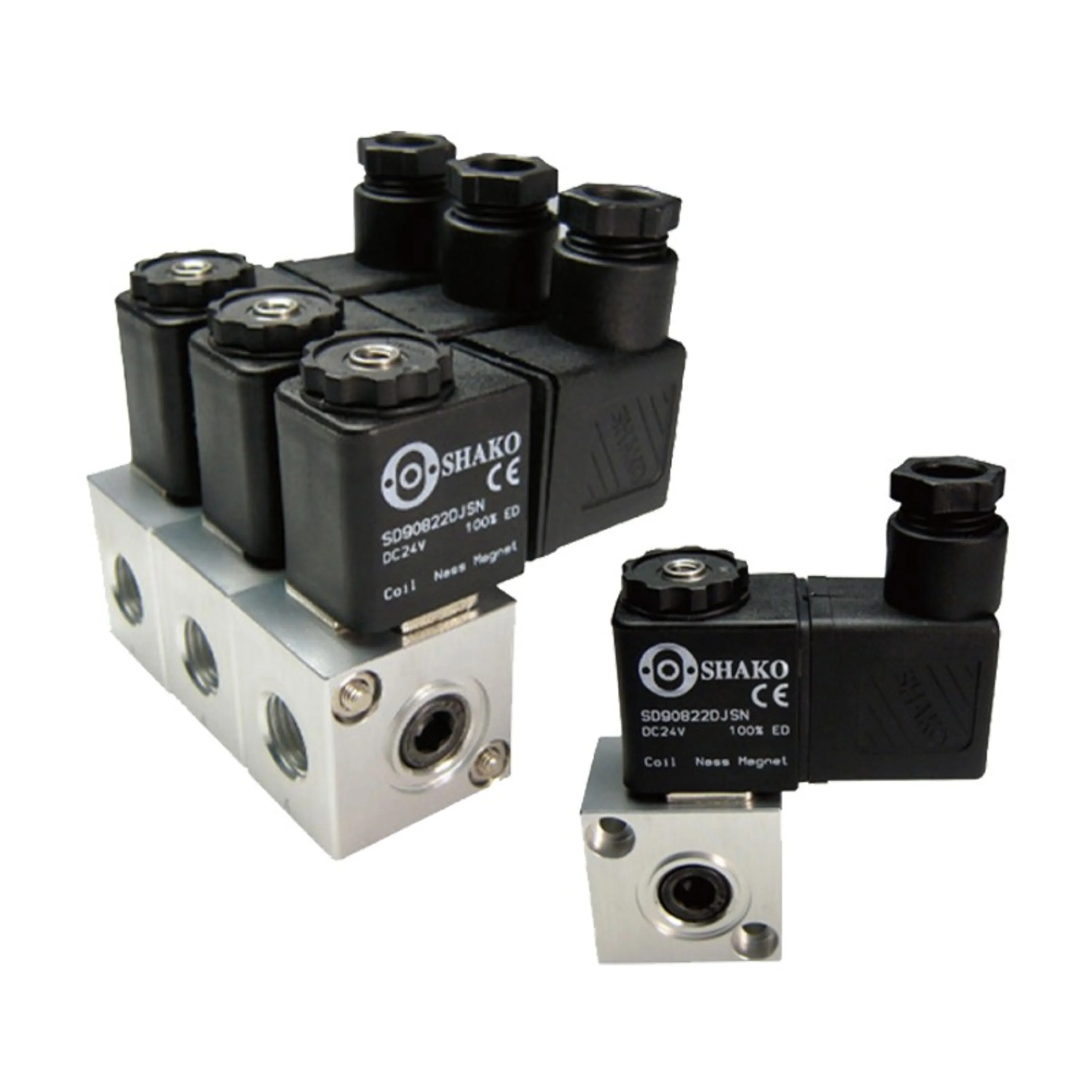 شیر پنوماتیک برقی 2-3 سایز 1/4 نرمال باز ایستاده مدل PU320N-02S شاکو (SHAKO)