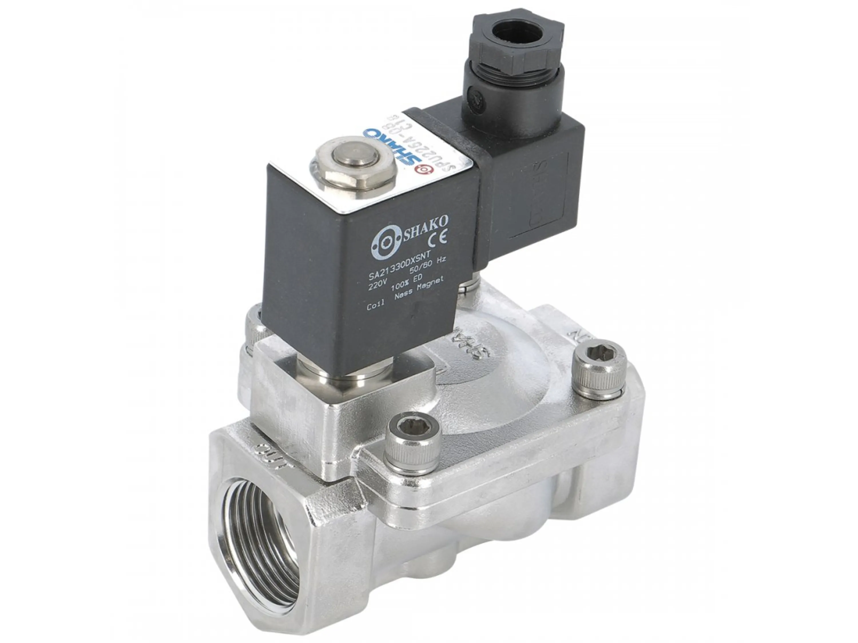 شیر برقی استیل 2-2 شاکو سایز 11/4 اینچ با شناسه فنی SPU225-12A
