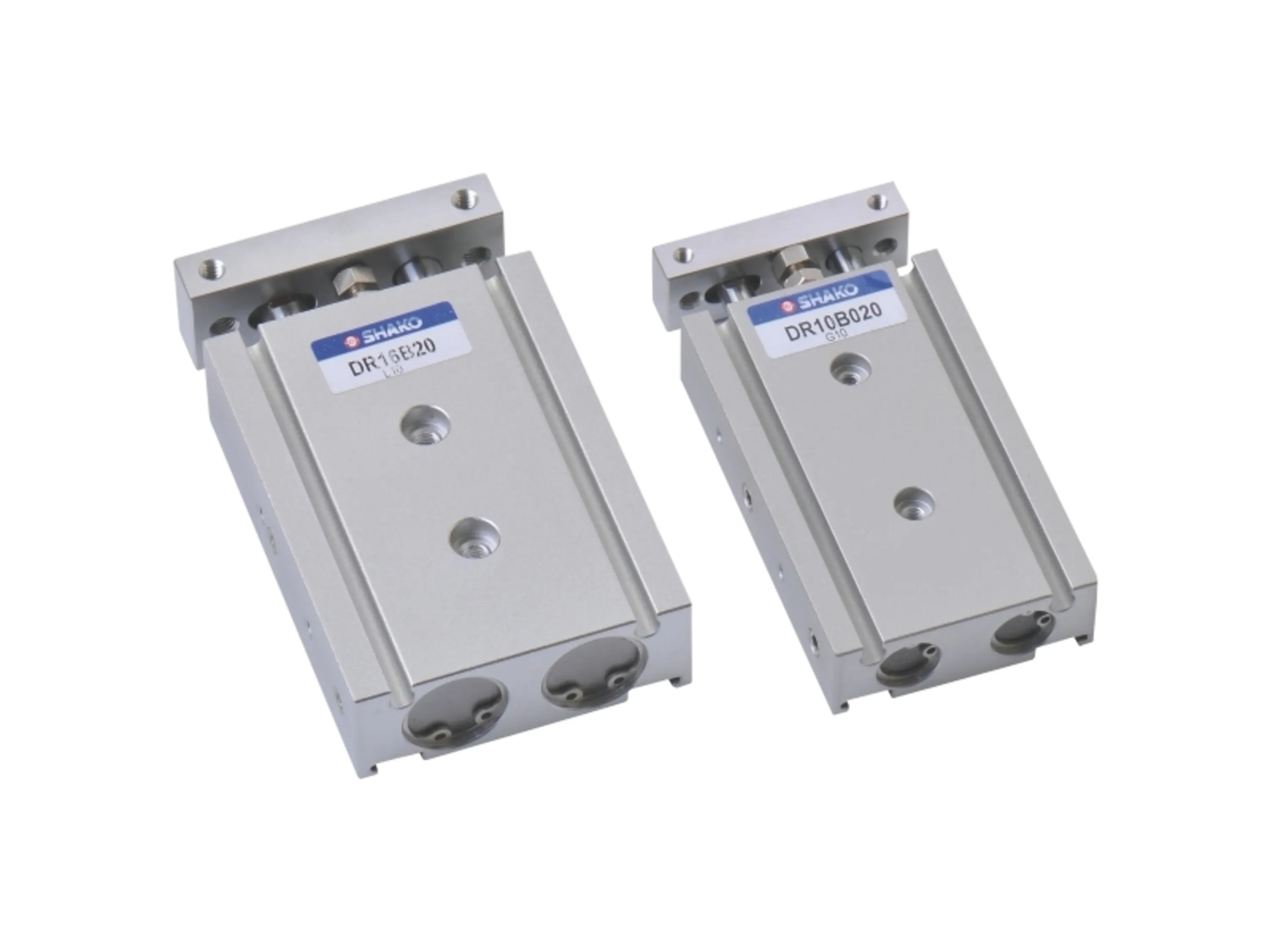 جک های کتابی دو طرفه Shako بدنه ای از آلیاژ آلومینیوم همراه با ضربه گیر داخلی دارند و شفت جک، کربن استیل روکش کروم می باشد. این جک ها در قطر سیلندرهای 10 تا 32 میلیمتر تولید شده اند. در روی بدنه شیار های مخصوص قرار گرفتن سنسور تعبیه شده که سنسورهای سری AL07 شاکو بر روی آنها قرار می گیرند. در این جک ها که به جک های دو شفت هم معروف هستند هر دو شفت به عنوان راهنمای یکدیگر و نیز برای جلوگیری از چرخیدن صفحه سر جک به کار می روند.