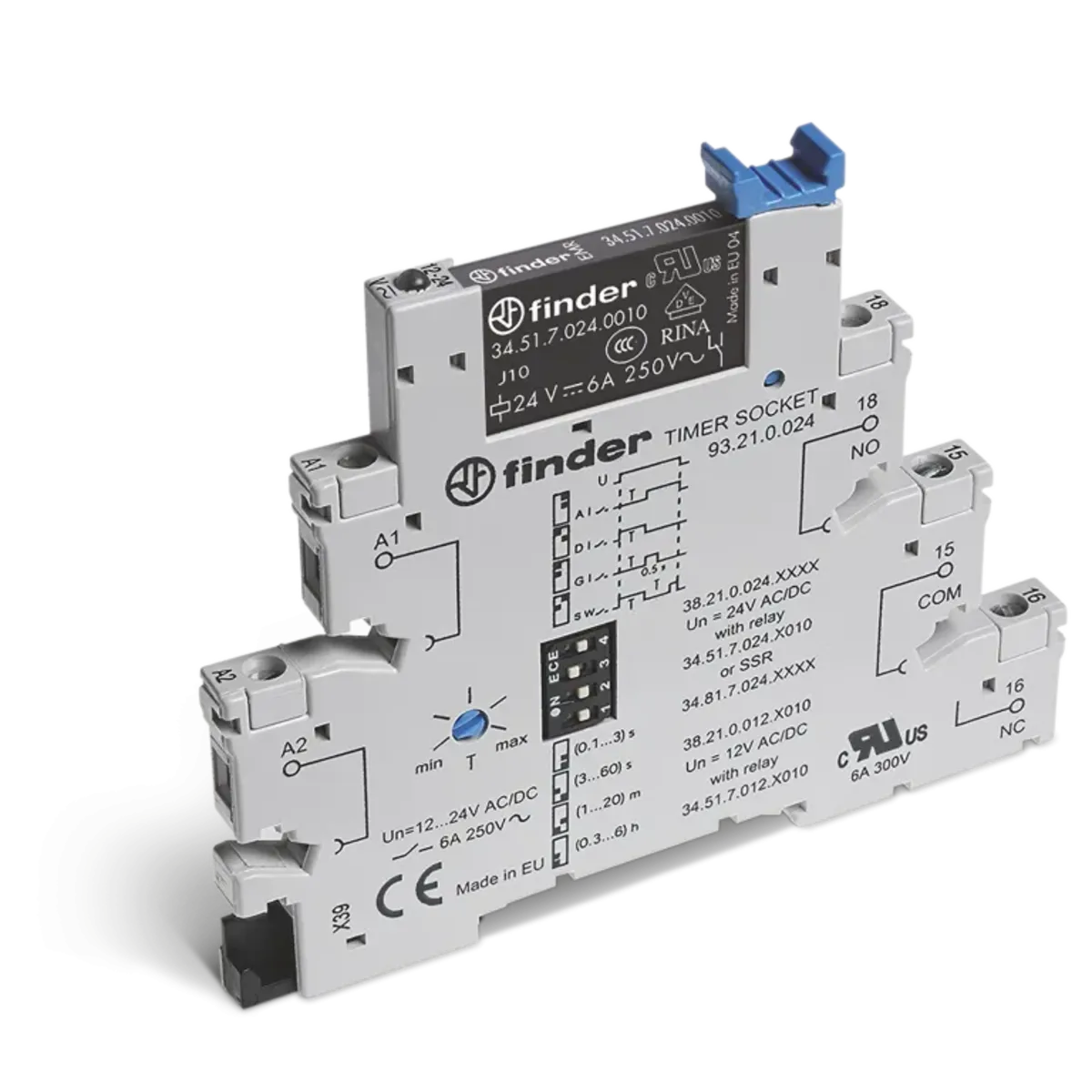 تایمر PLC فیندر مدل 382100240060 در سیستمهای کنترل صنعتی و خودکار برای کاربردهای مختلفی به کار میرود. این تایمر برنامهپذیر صنعتی دارای ورودیهای دیجیتال و خروجیهای رله است که جریان حداکثر 5 آمپر را پشتیبانی میکنند و با ولتاژ تغذیه 24 ولت DC کار میکنند.