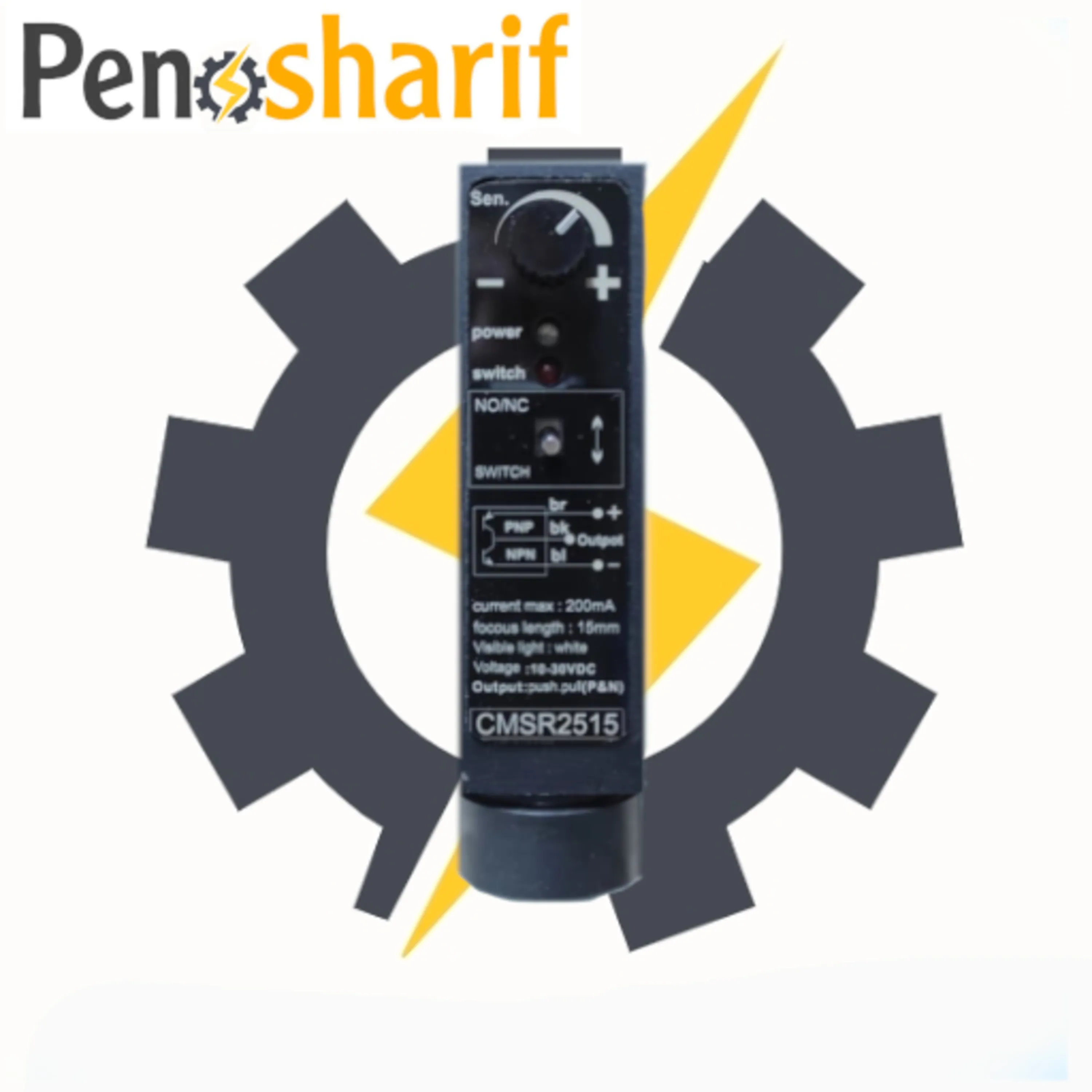 نحوه سیم بندی : این سنسور سه سیمه در دو نوع PNP و NPN قابل سفارش است . بوسیله یک کلید که روی سنسور تعبیه شده خروجی در حالتهای NO و NC قابل انتخاب است .