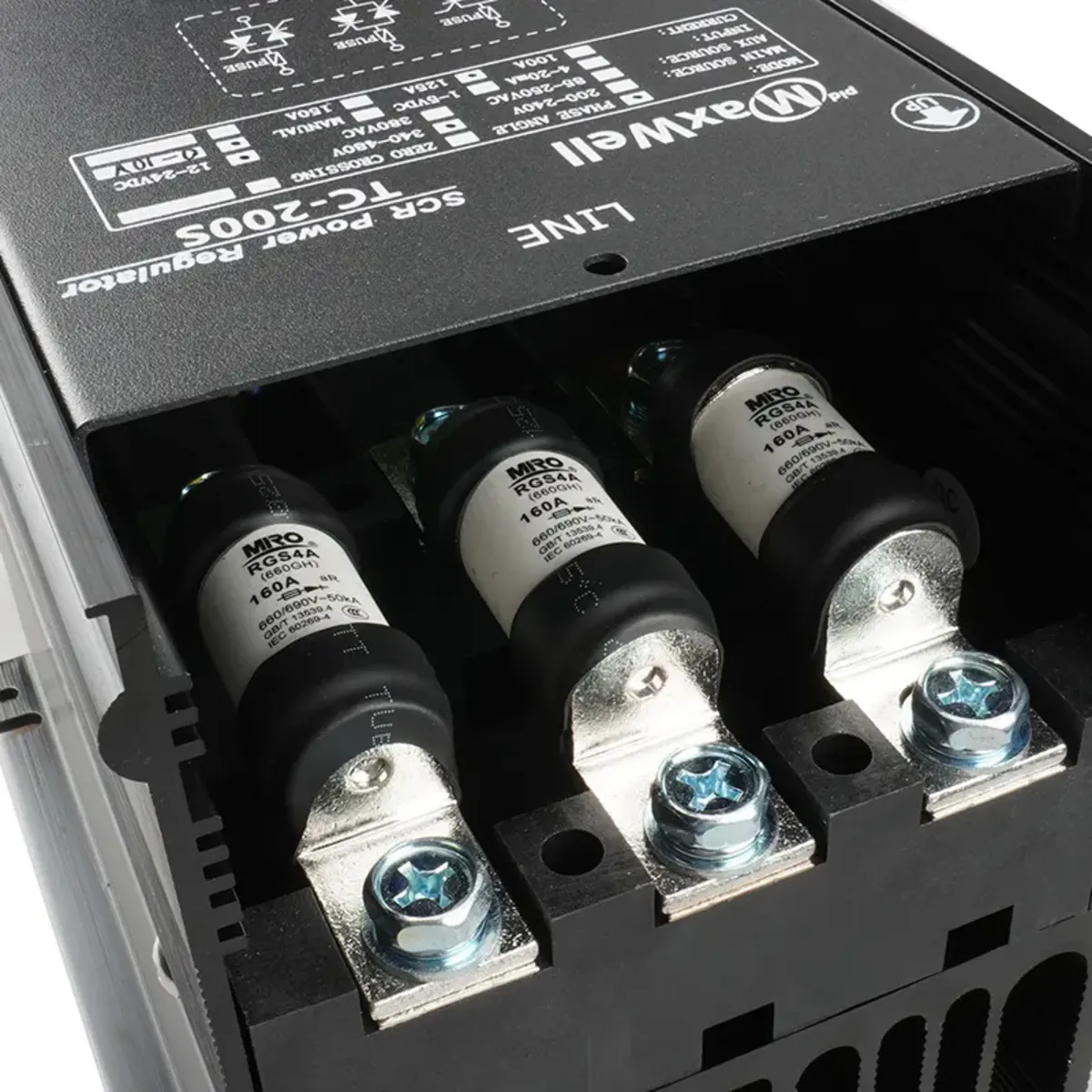 رله الکترونیکی مکسول اس اس آر 200 آمپر سه فاز(تریستور)ورودی قابل تنظیم با شناسه فنی TC-200S SSR