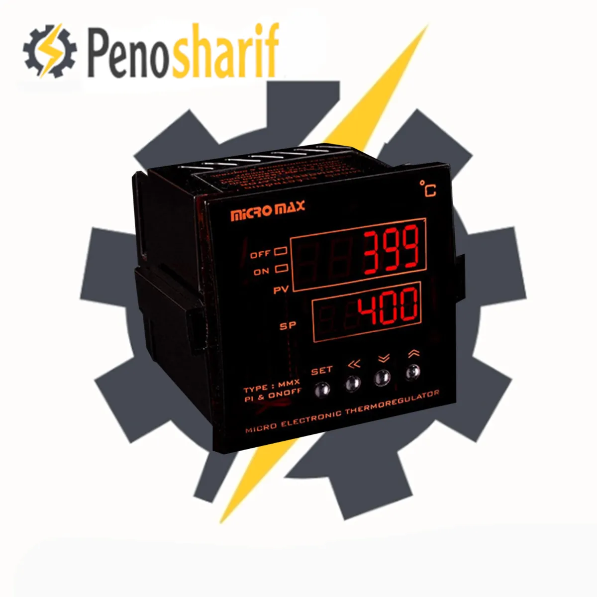 ترموستات میکروپروسسوری 40- تا 1300 میکرومکس مدل MMX-1300PI (MICROMAX MMX-1300PI Thermostat) دارای نمایشگر دیجیتال جهت نمایش دمای محیط و درجه حرارت تنظیمی می باشد. محدوده تنظیم درجه حرارت این محصول 40- تا 1300 درجه سانتیگراد با دقت 1 درجه سانتی گراد است. از دیگر ویژگی های این محصول، قابلیت استفاده در دو حالت ON/OFF و PI (تناسبی هوشمند)، قابلیت تنظیم پسماند حرارتی ( dif ) تا 60 درجه سانتی گراد زیر نقطه تنظیم ( SP )، قابلیت تنظیم OFFSET از 50- تا 50+ درجه سانتی گراد ، تصحیح خطای ترموکوپل در تمام درجه حرارت ها بواسطه حافظه بالای دستگاه و الگوبرداری کامل منحنی دمای ترموکوپل طبق استاندارد TS-90، قابلیت تنظیم زمان سیکل (CYCLE) از 4 الی 240 ثانیه و قابلیت قفل کردن کلیدها ( ایجاد کد رمز طبق سفارش ) می باشد.