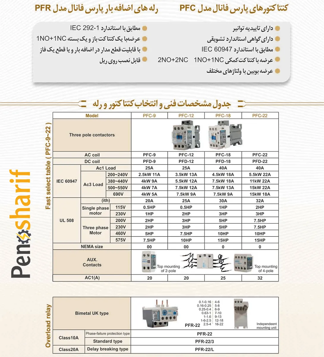 مینی کنتاکتور 12 آمپر پارس فانال 5.5 کیلو وات مدل PFCM-12
