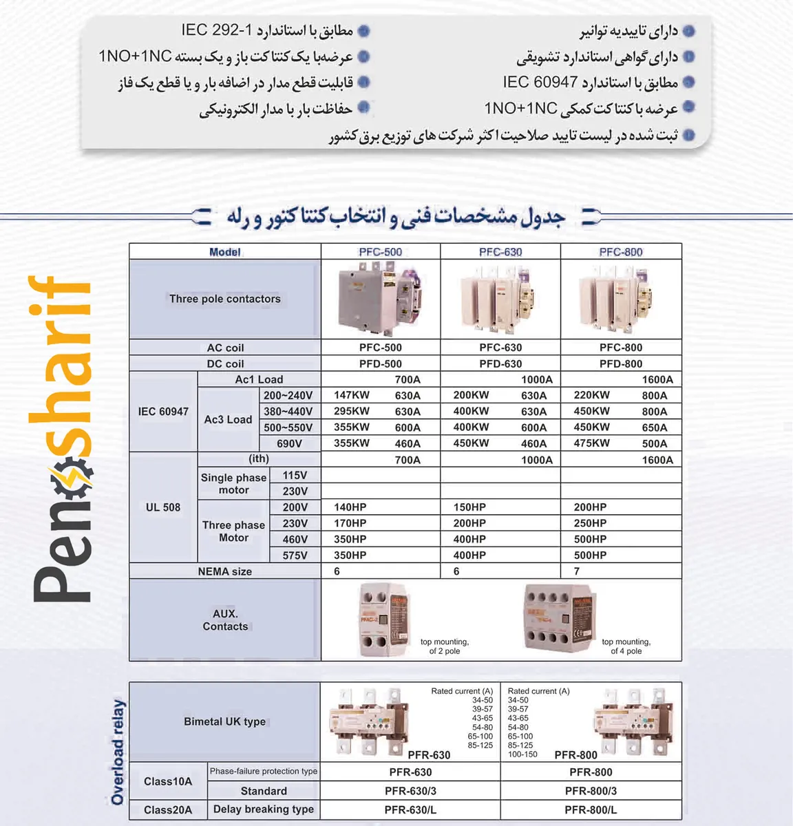 مزایای استفاده از کنتاکتور 500 آمپر 295 کیلووات پارس فانال بوبین 220 ولت PFC-500 در مدارات: